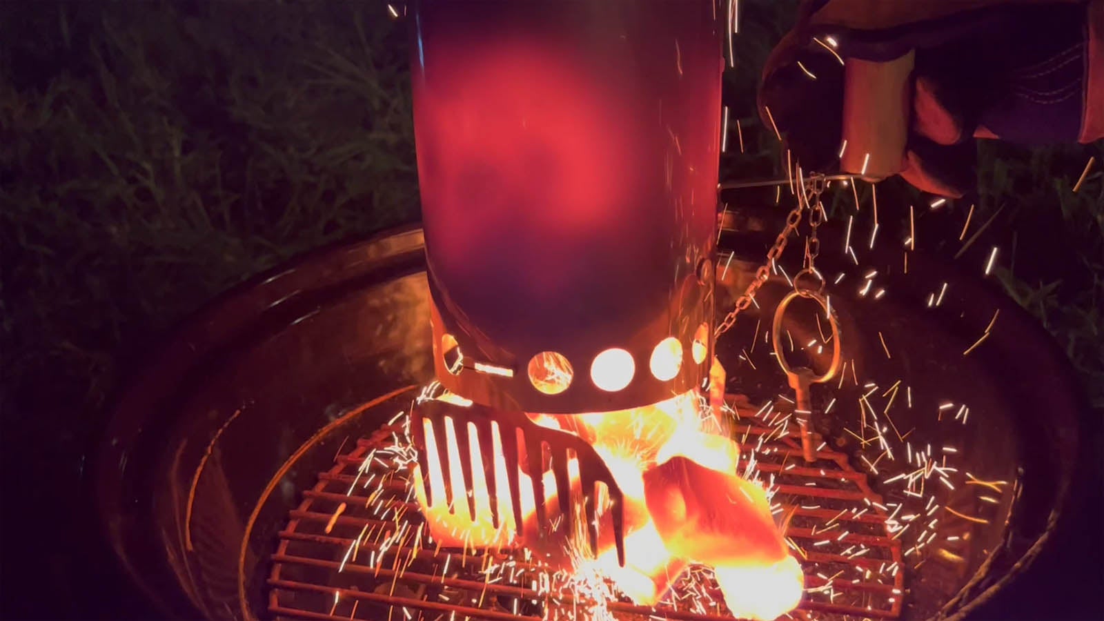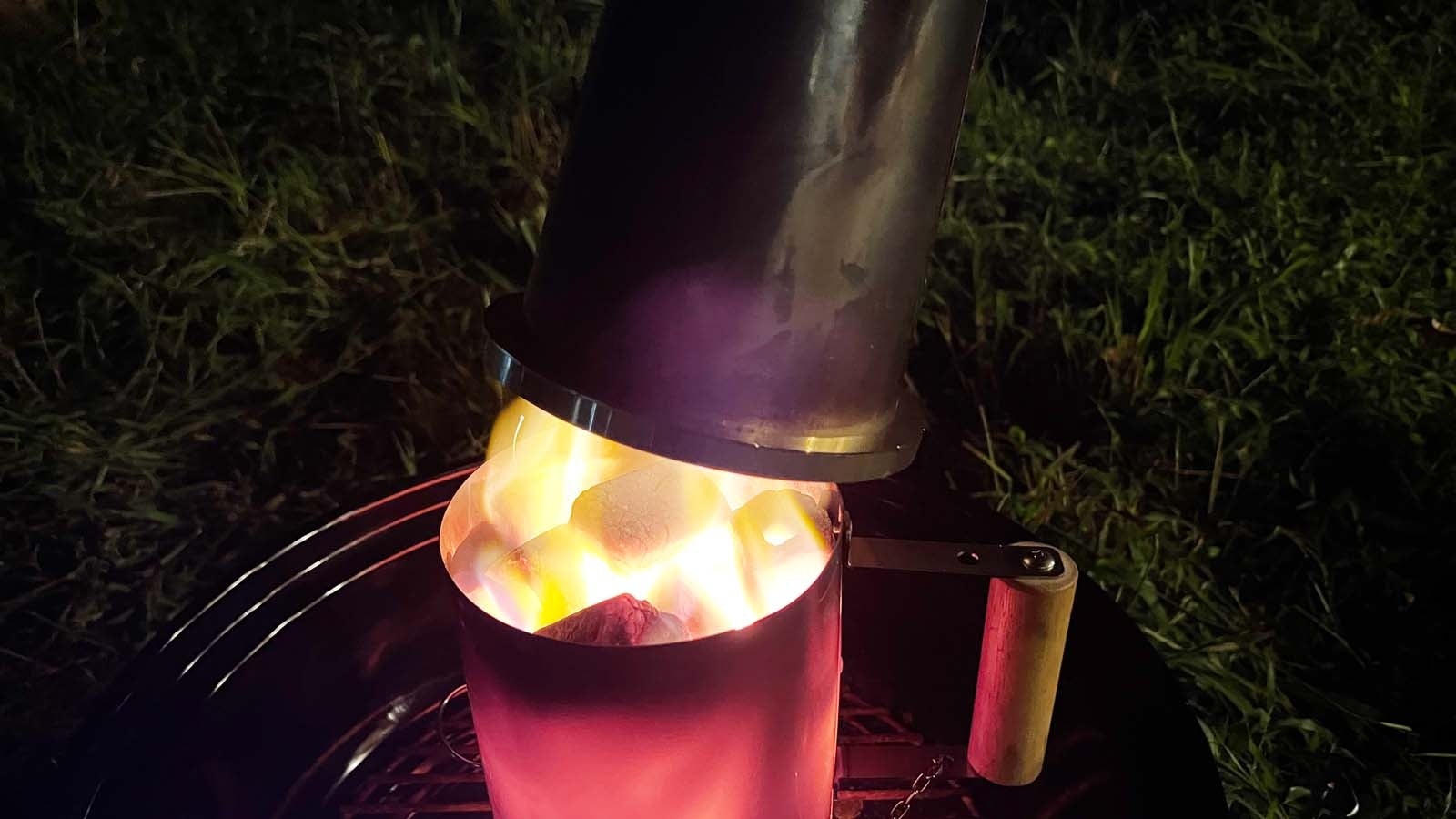 ボルケーノは炭への着火を加速する、煙突付きの火おこし器です。