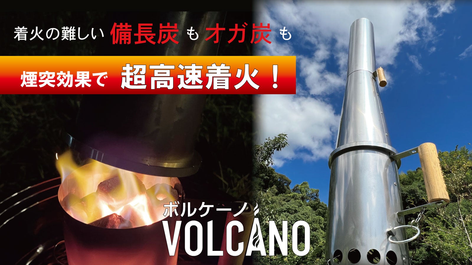 1.「火起こしに時間がかかる」「火起こし面倒くさい」そんな悩みにおさらば。ボルケーノで高速着火。