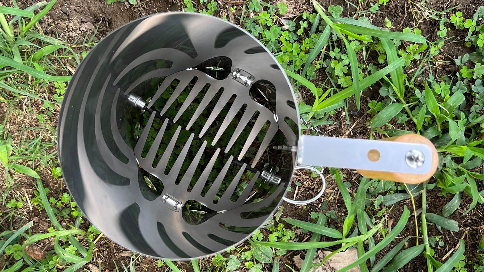 ひっくり返さずに炭を下に落とすことができ、炭を調理器に移しやすくなっています。