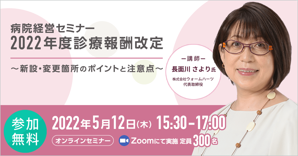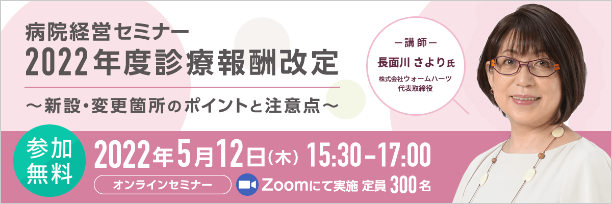 病院経営セミナー「2022年度診療報酬改定~新設・変更箇所のポイントと注意点~」を5月12日(木)にオンライン開催