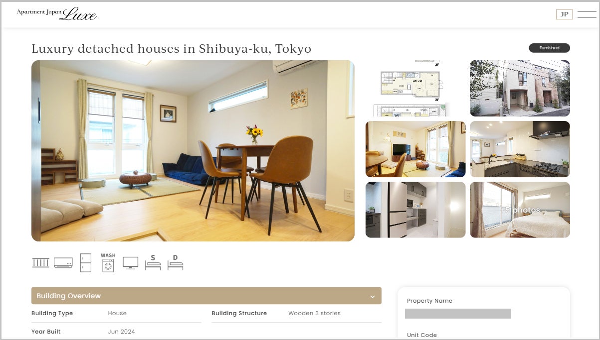 『Apartment Japan-Luxe』は、すでに運営している外国人向け賃貸サイト『Apartment Japan』のプレミアム版として展開する新サービスであり、日本国内の高級家具付き賃貸マンション、高級サービスアパートメント、ヴィラ、戸建て住宅など、選び抜かれた上質な物件情報を英語で提供します。日本での快適な暮らしを求める海外のハイクラスな入居者に向け、物件の検索からオンラインでの見積取得、申し込み、契約書の自動生成、電子署名までをワンストップで対応します*。