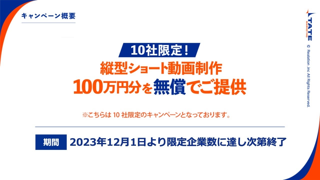 キャンペーン概要:10社限定!縦型ショート動画制作100万円分を無償でご提供