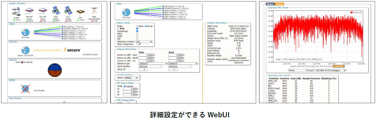 USBケーブルで PC と接続することで、詳細設定が可能な WebUI に接続することができます。視認性が高く、簡単な操作で受信機の設定・状態の監視が可能です。
