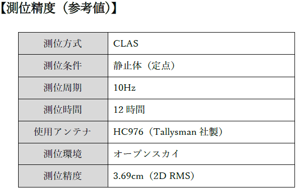 - 基本性能、測位結果の100Hz出力機能、無線接続機能、地殻変動補正機能、