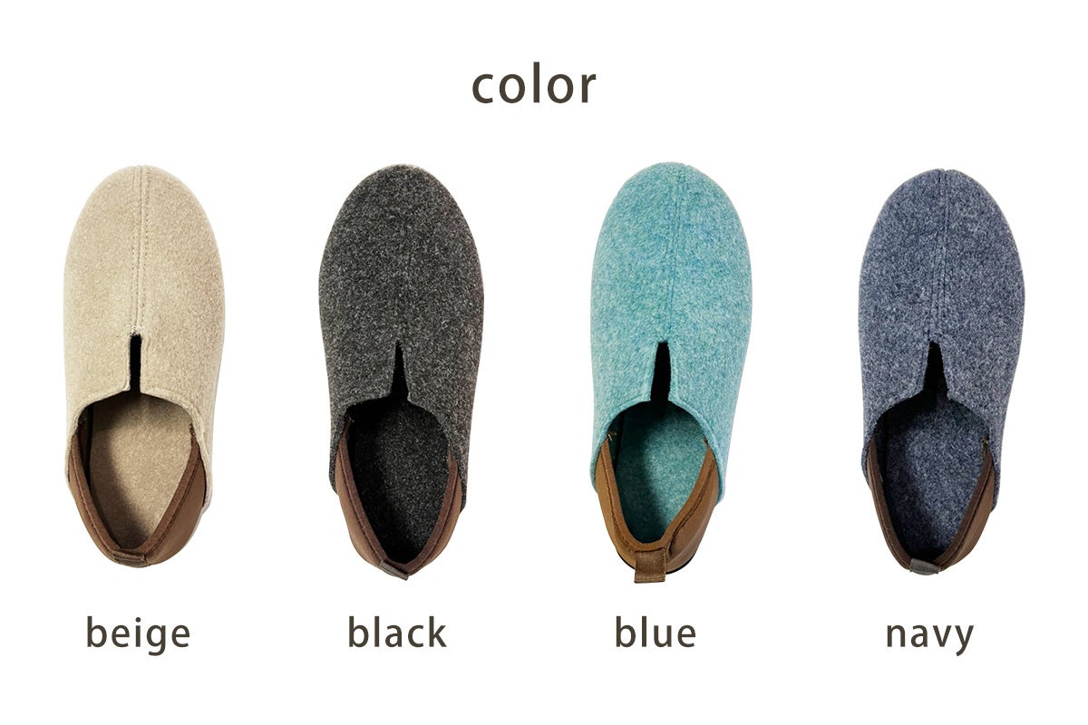 アッパーもインソールもふんわりと柔らかいフェルト生地で、一度暖まった熱を逃さず、暖かい状態を保ってくれます。また、吸湿性・放湿性にも優れているので、汗による蒸れや冷えも防ぐのでこれからの季節に最適です。