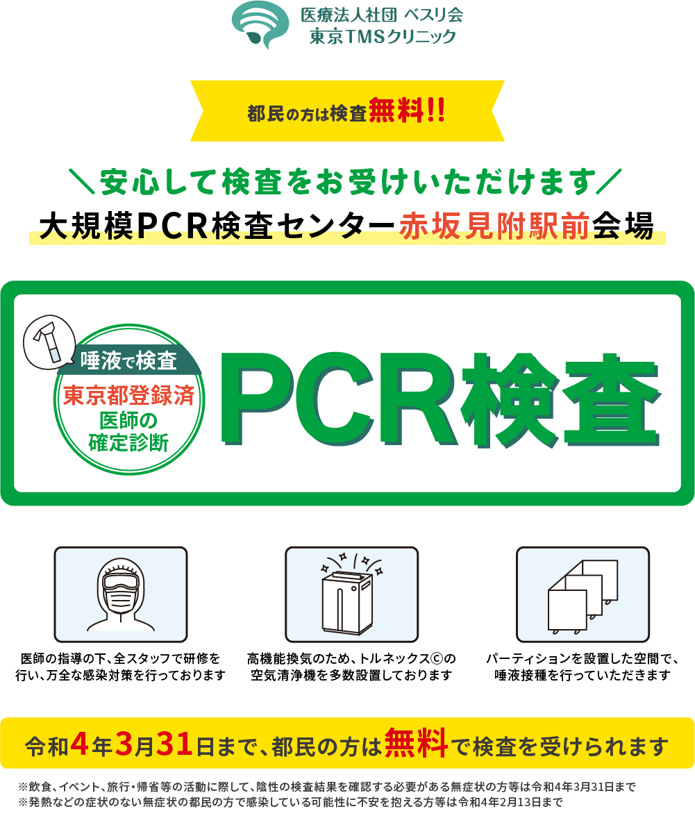 医療法人社団 ベスリ会 東京TMSクリニックは、赤坂見附駅徒歩0分の赤坂光映ビルに、高機能換気を実現した300平米メートルを超える大規模PCR検査センターをオープンしました。