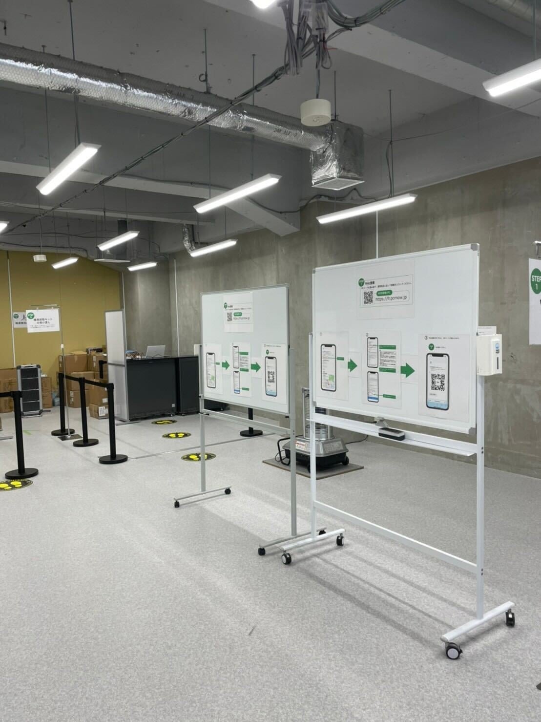 当センターの特長は、最大限の感染対策のための都内最大級の規模のスペースと高機能換気を実現する多数の空気清浄機の設置です。
