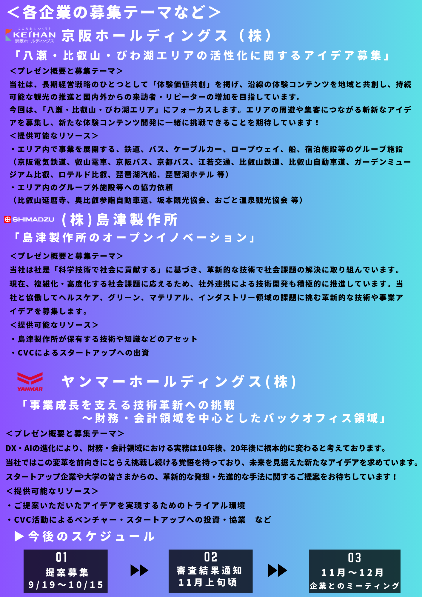 ・対 象:登壇企業のニーズに応える事業アイデアや技術を持つスタートアップ企業等、