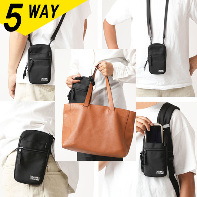 そんな中、スマホはリニューアルされる度に大きくなっています。最新の iPhone12 Pro Max は、160.8×78.1mmの大きさです。今まで入っていたポケットに入らない。女性の服では絶対に入らない、そんな不満が出てきていました。又、在宅ワークの推進で、スマホの2個持ちも増えています。会社のスマホと自分のスマホ、ますますポケットの持ち運びに不便が生じています。そこで登場したのが「賢くスマホをケータイするスマホポーチ TRAVINE by Georiem」です。