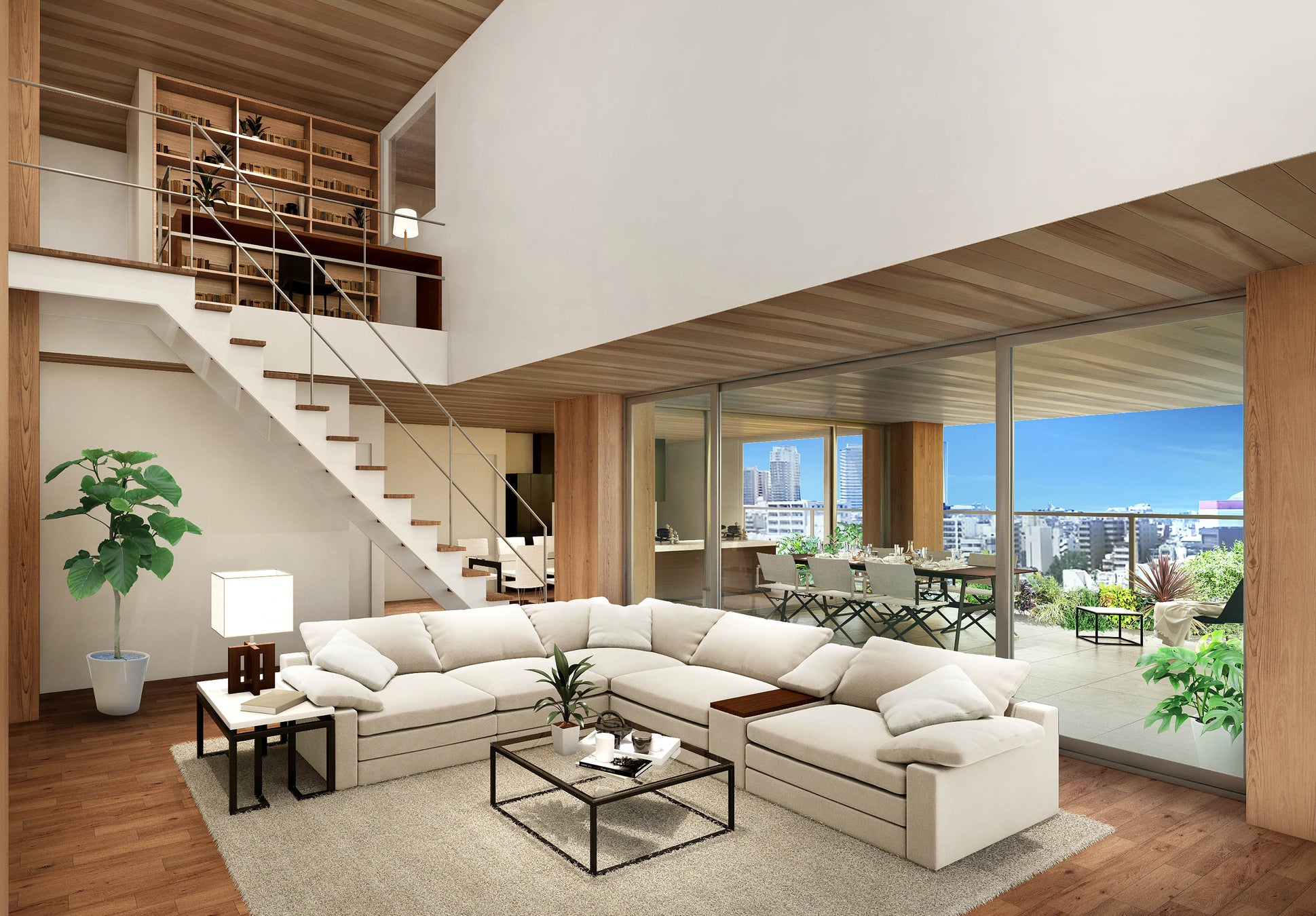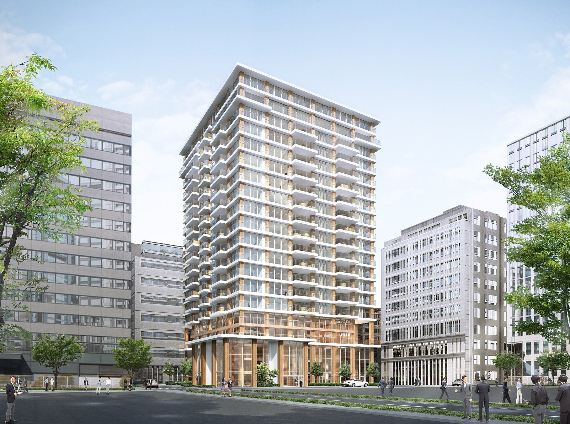 本モデルは、東京都内に建設を想定した事務所および集合住宅複合型の純木造超高層建築で、国産材(カラマツ)と独自の木質耐火部材「COOL WOOD(クールウッド)」を用いています。