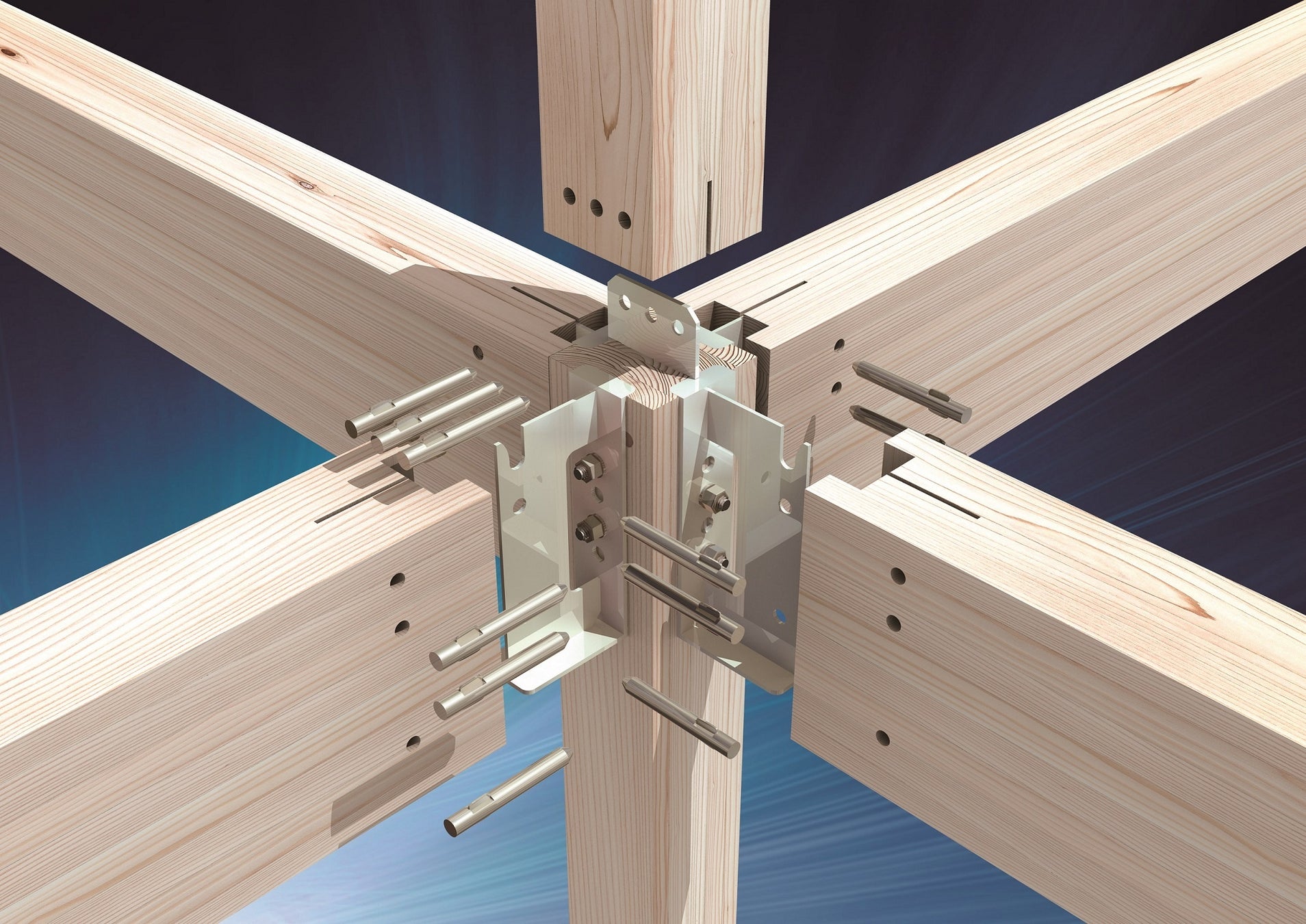 オリジナルの金物を使用して柱や梁の接合部を緊結することで、木造建築の耐震・耐久性能を飛躍的に高めました。建方には特殊技術を必要とせず、施工性も高いのが特徴です。