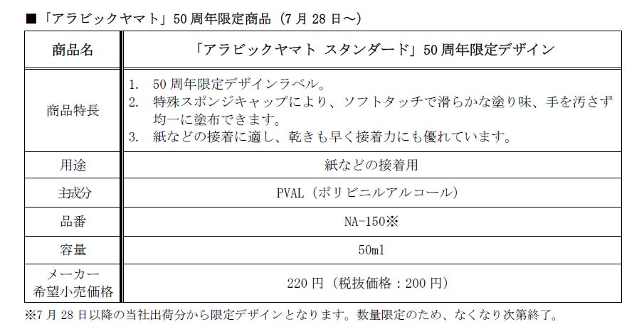 ~50周年 これからもあなたのそばに~ 液状のり「アラビックヤマト」50周年!記念特設サイトを7月1日より開設