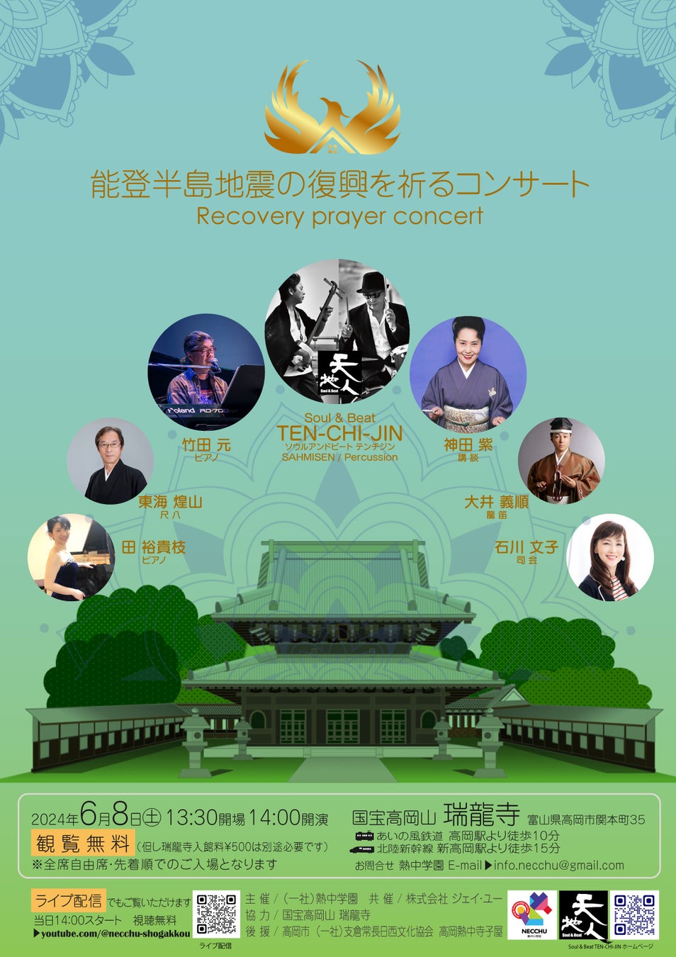 「能登半島地震の復興を祈るコンサート」富山県高岡市国宝瑞龍寺で開催