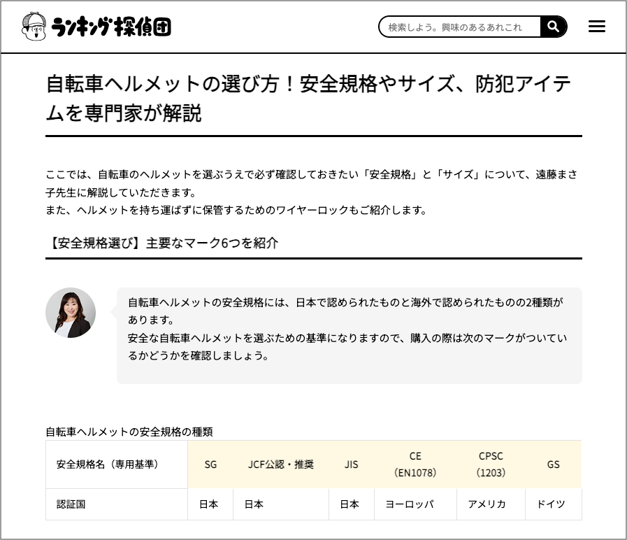 以上のアンケート調査結果のほかに、本記事では自転車ジャーナリストの遠藤まさ子さんによる自転車ヘルメットの選び方をご紹介しています。
