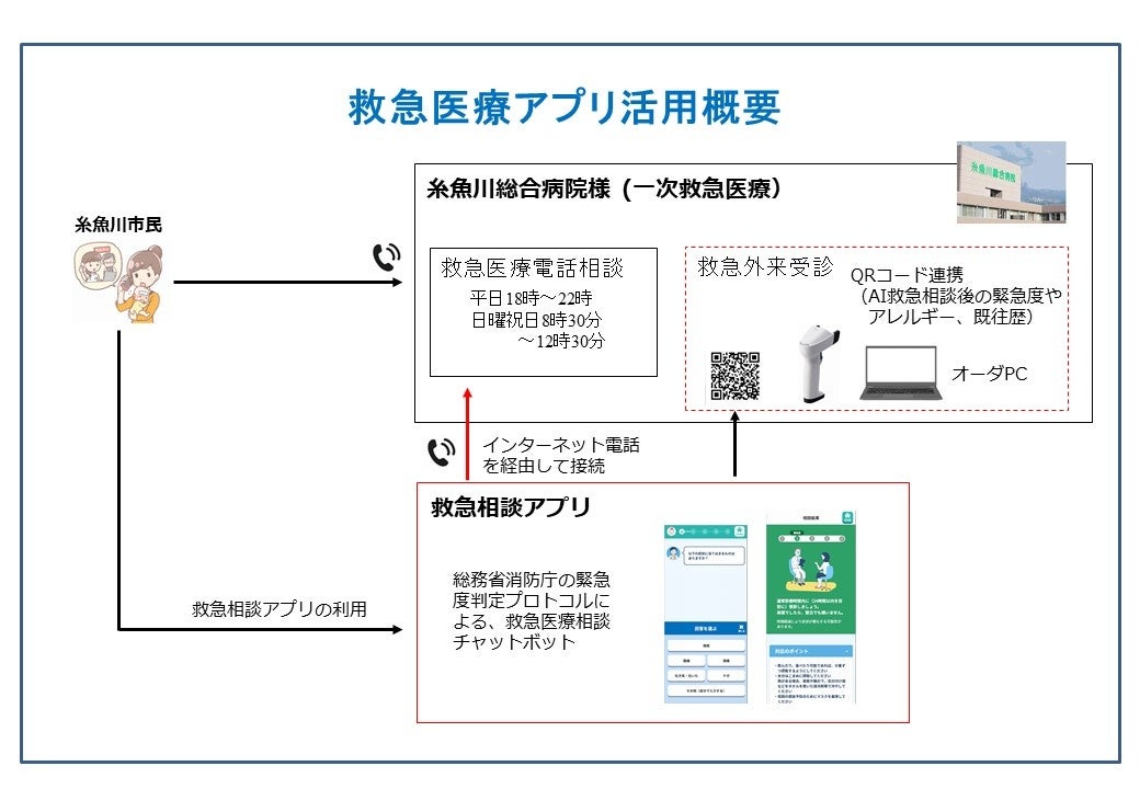 新潟県糸魚川市では、厚生連糸魚川総合病院(病院長:山岸文範)が夜間の一次救急医療を対応していますが、救急相談アプリにより市民の不安軽減や医療機関の適正受診の推進につながることを期待され、糸魚川市で実証を行うことになりました。