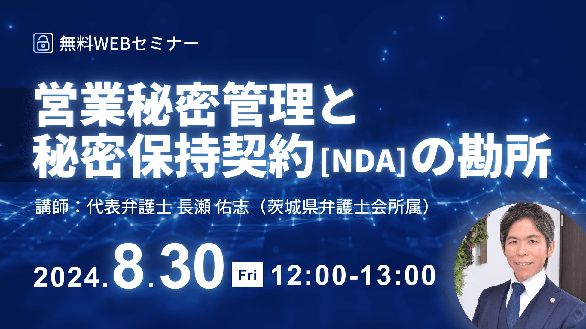 ◤ランチタイム無料セミナー 8月30日(金曜日)開催◢ 営業秘密管理と秘密保持契約[NDA]の勘所
