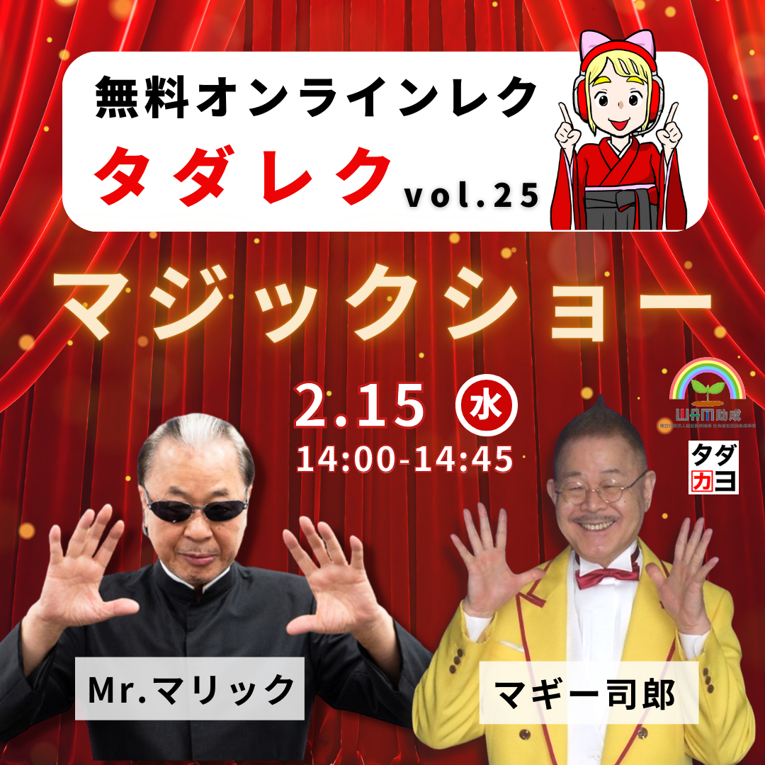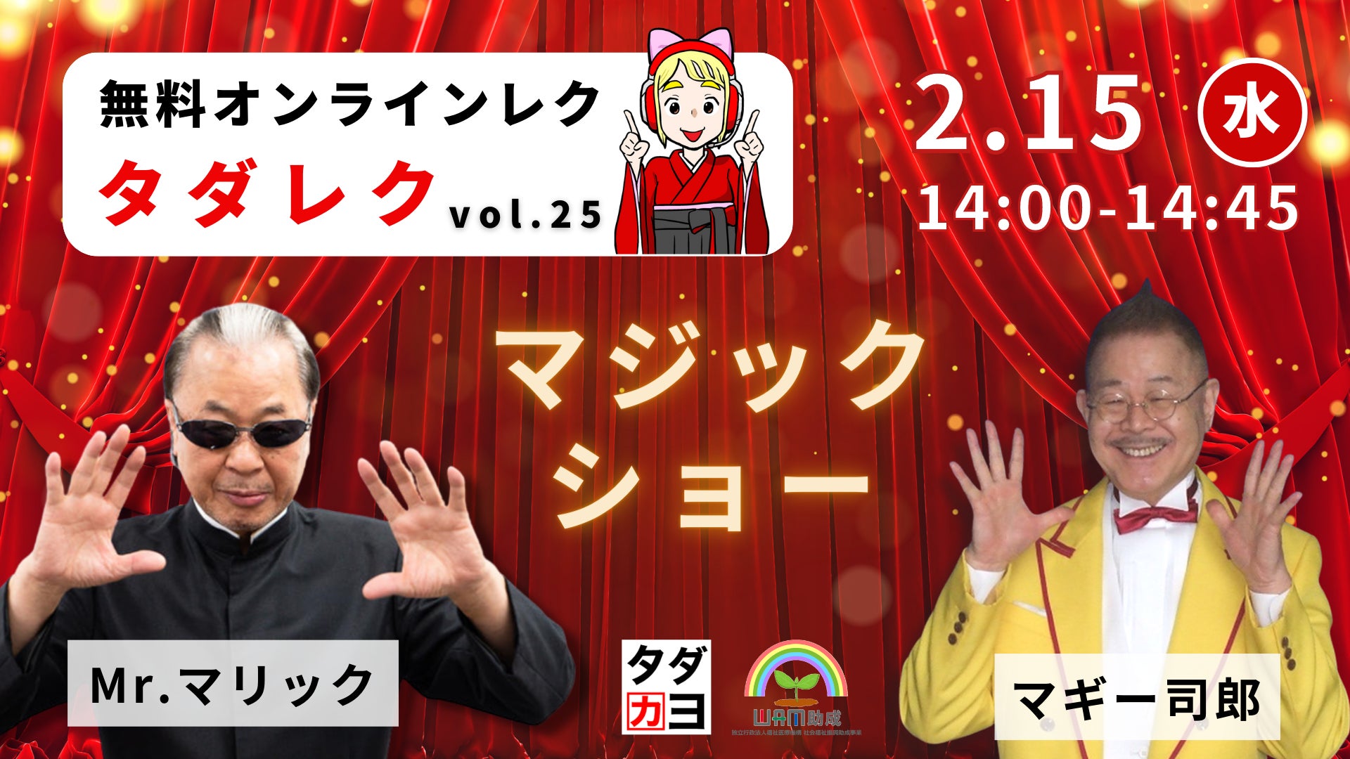 【2/15開催】Mr.マリック&マギー司郎による無料オンラインマジックショー タダカヨのタダレクvol.25