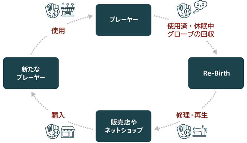 このような市場環境下において、私たちは使用済みや休眠中のグローブが廃棄される前に集めて、高度な加工技術で高品質かつ低価格のグローブに再生し、未来のプレイヤーにつないでいきたいと考えています。このサーキュラーエコノミーを野球産業の新しい文化として醸成していくことで、野球人口の増加に貢献するとともに、地球環境にやさしい持続可能な「未来の野球界」を創造してまいります。