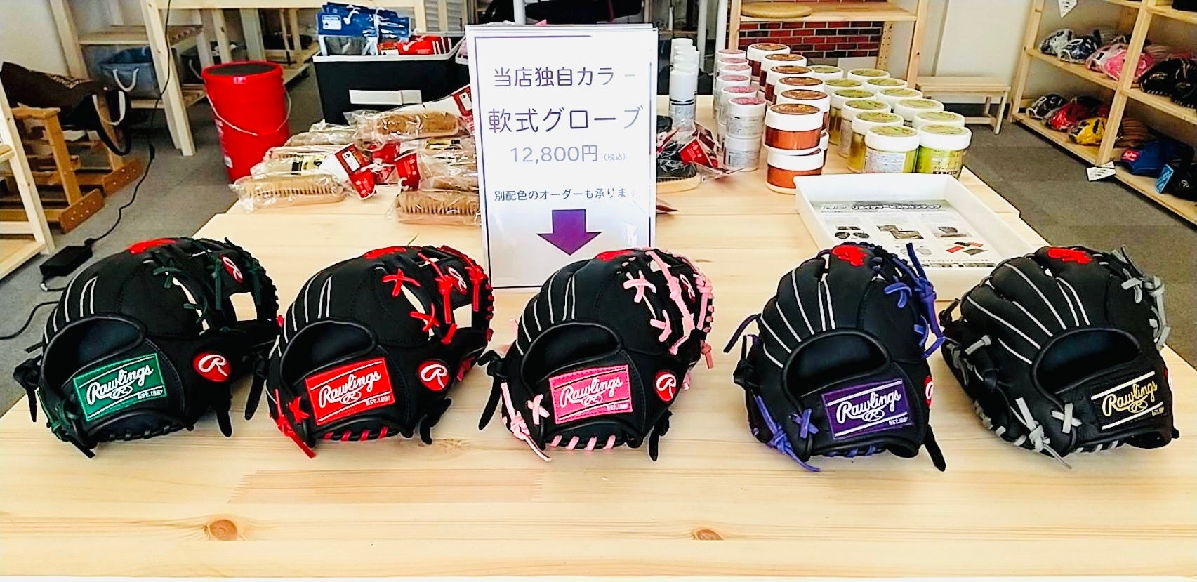 東村山店では、Re-Birthのグラブマスターによる修理やリメイク、再生グローブの販売、中古グローブの買取・回収に加えて、Re-BirthオリジナルグローブのローリングスColored by Re-Birthも展開しております。