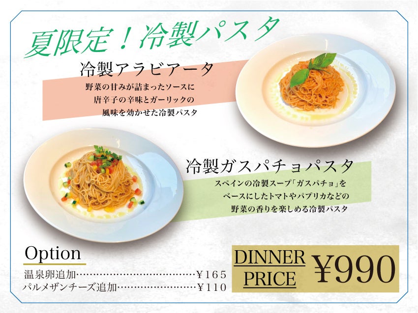 〜7/4-9/30の期間限定で2種類の冷製パスタを提供〜