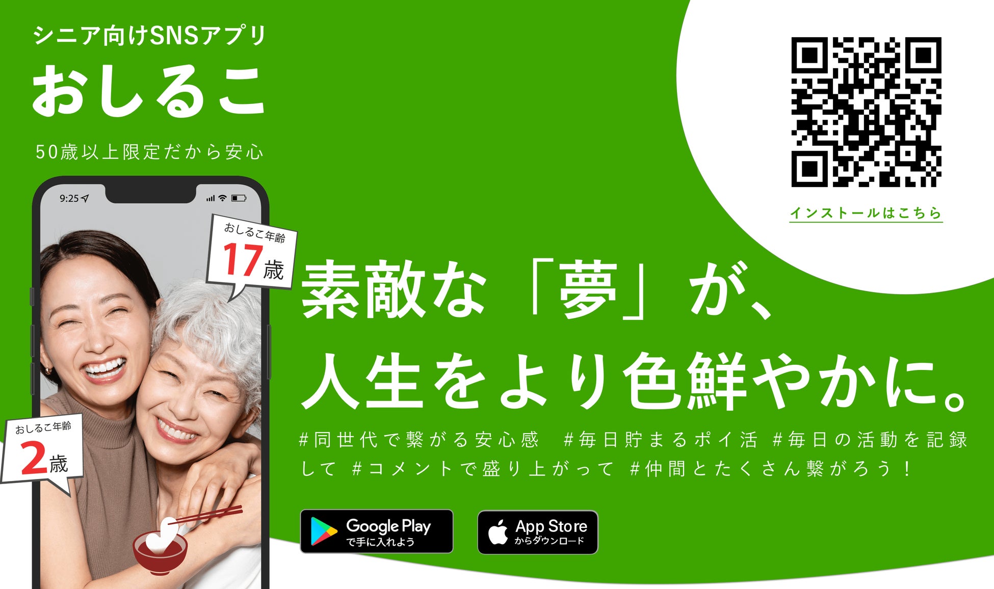 【50歳以上限定のシニアSNSアプリ「おしるこ」】
