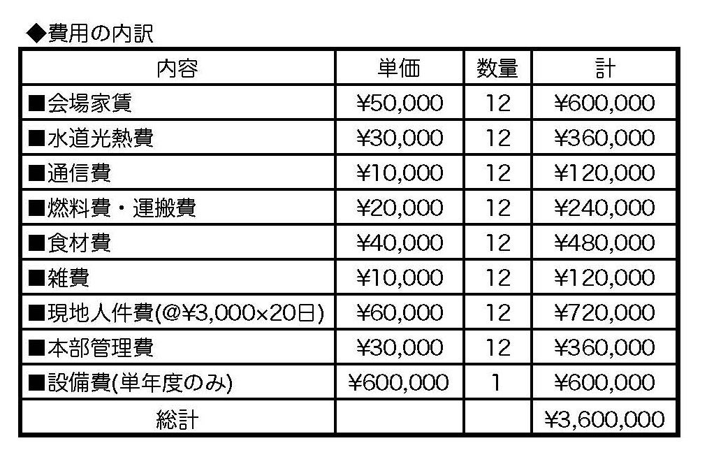 360万円のご寄付が集まるごとに、新教室を新エリアにて開室します。オンラインにて本部と各自習室をつなぎ、毎週土曜は10人の塾生に対する個別指導を行い、平日は自習室として運営します。