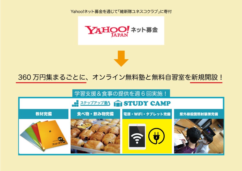 支援の輪が急加速!?『放課後教室』からとりこぼされがちな子ども達にも届く食事つき学習支援への寄付が、『Yahoo!ネット募金』でも可能に!