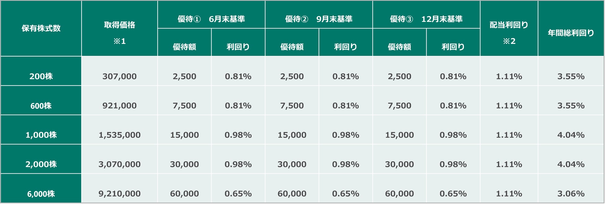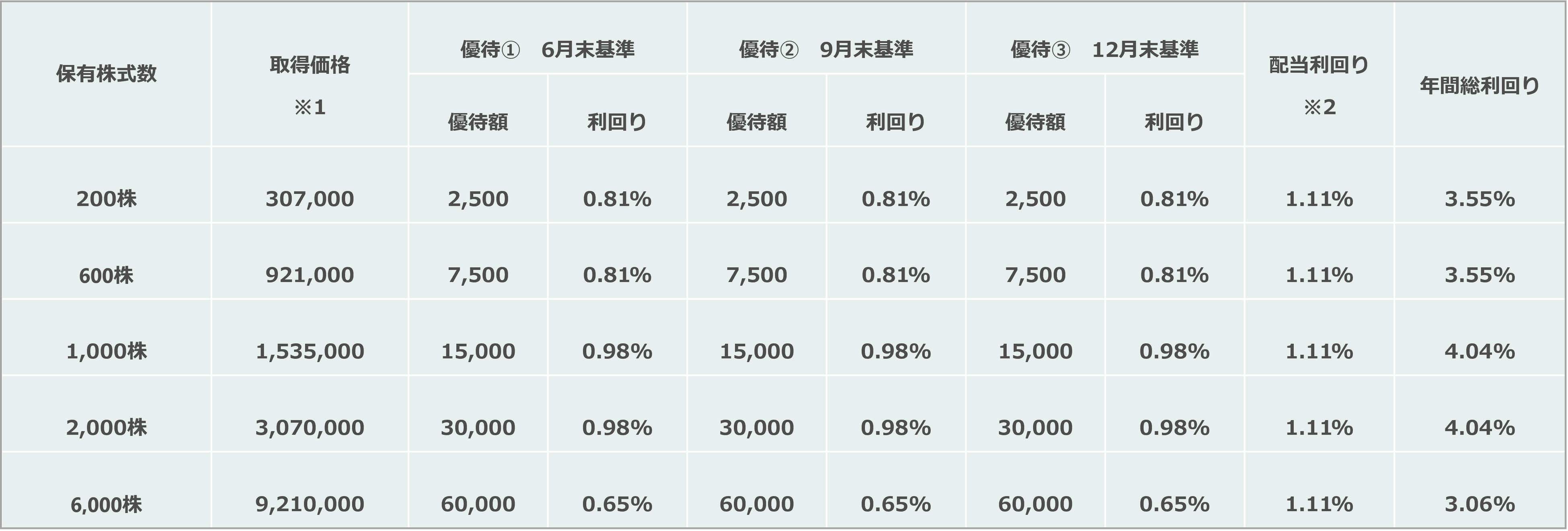年3度の株主優待と安定的な配当の実施により、株主優待制度改定後の利回りの水準は株主優待実施企業の中でも高い水準にあると考えております。