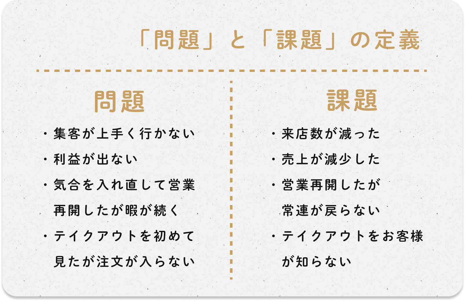 まずごちナビでは、「問題」と「課題」の定義を分けて整理しています。