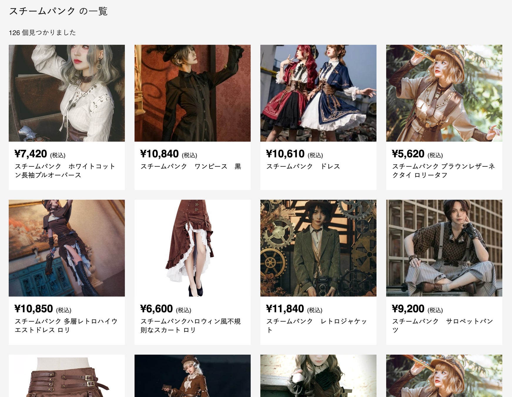 ロリータファッションと融合したスチームパンクロリータ衣装を発売。レトロでクラシカルな雰囲気のあるスチームパンクの中に可愛さのある衣装として人気が高いファッションです。ブラウスやスカートのほか帽子や皮ベルトなど小物類も多数販売しています。