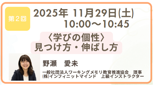 登壇者:野瀨まなみ(一般社団法人ワーキングメモリ教育推進協会理事)