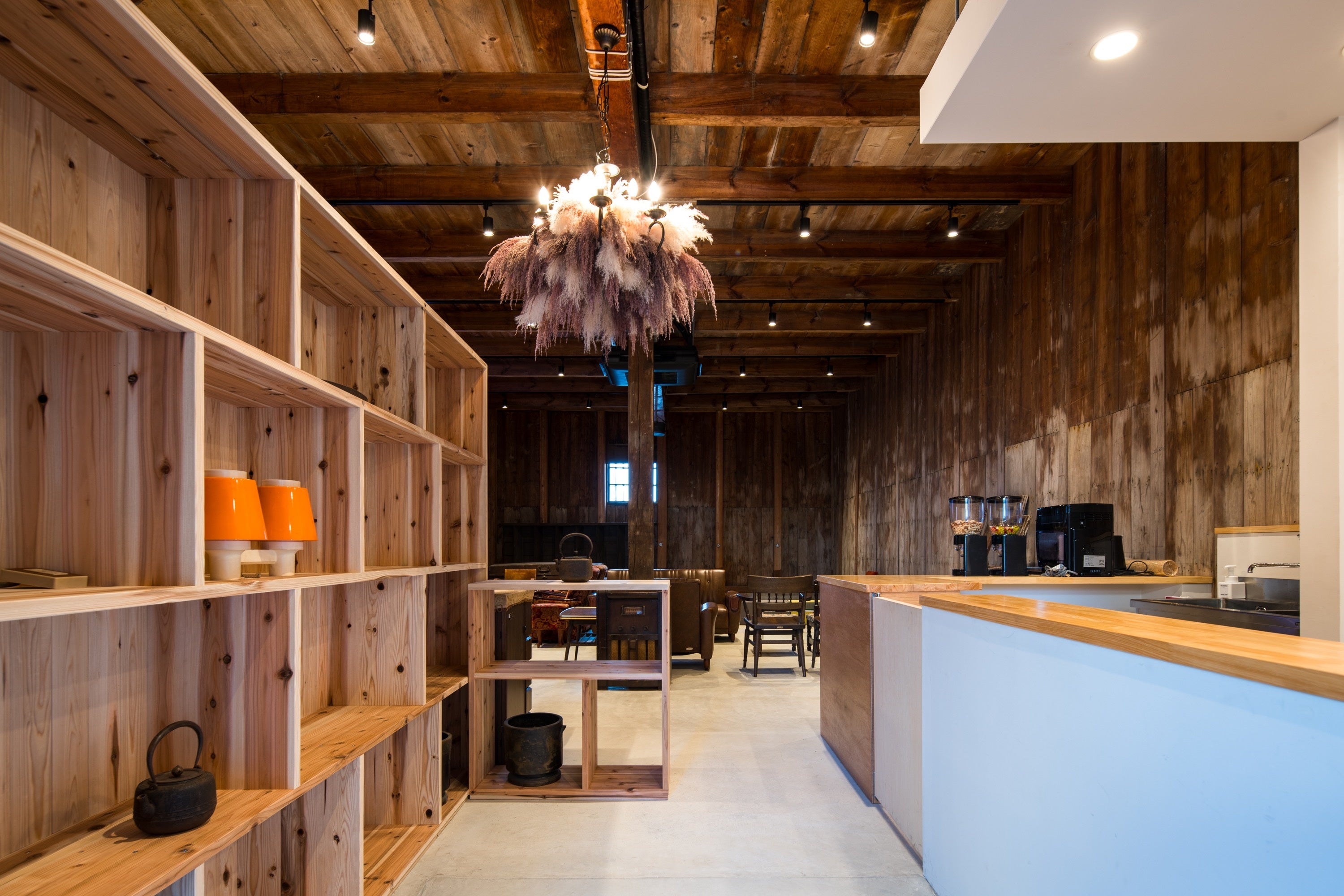 1階には宿泊客と地元住民とのコミュニケーションの場としてカフェスペースとなっており、心地よい西陽が差し込む夕焼け色を取り入れています。