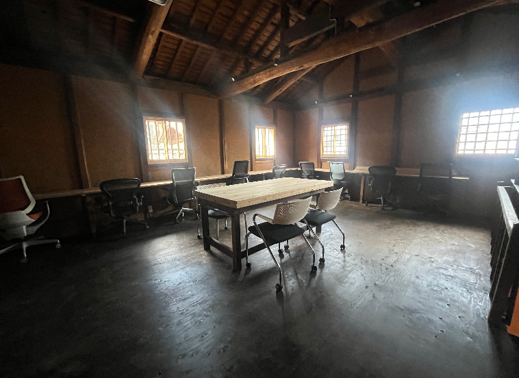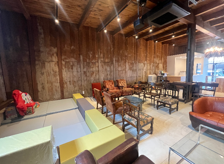 今回完成した建物は1階をソファやキッズスペース、120インチのプロジェクター、フリードリンクなどを整え、自分の家の延長として、子供と一緒にのんびりしたり、ご近所さんとおしゃべりしたり、映画をみんなでみたりできる環境づくりを目指しており、2階は、オーフィスチェアを用意し、仕事や、中高生の宿題や試験勉強ができる場として活用できる環境に仕上げています。