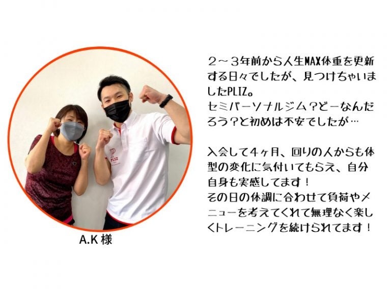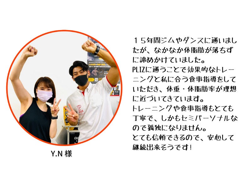 PLIZでは、適切な運動習慣や食事習慣を指導させていただき、リバウンドをしないための体づくりを行います。