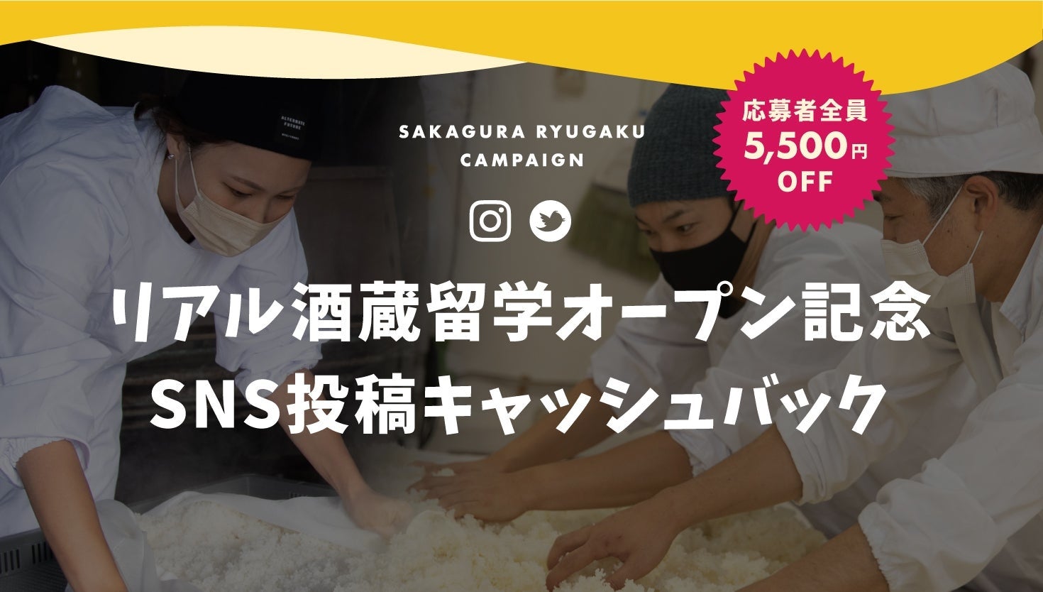 リアル酒蔵留学のオープン記念として、SNS投稿キャッシュバックキャンペーンも実施しております!