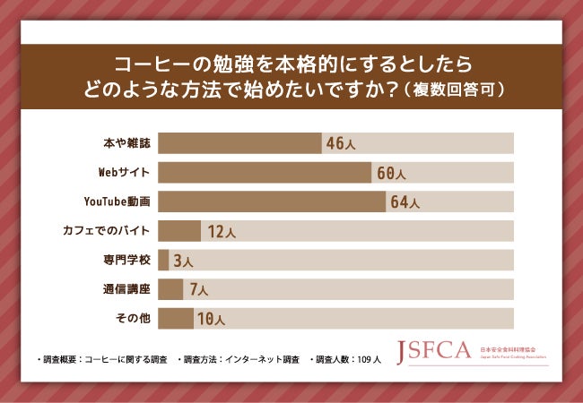 - コーヒーの勉強をするために…方法として『Webサイト』や『YouTube動画』の回答多数!