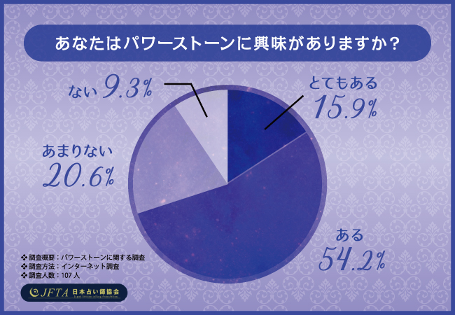 そこで今回、パワーストーン鑑定士資格認定試験(https://www.uranai.org/powerstone/)を主催する日本占い師協会(https://www.uranai.org/)は、日本全国の男女107名を対象に「パワーストーン」に関する調査を実施しました。