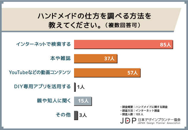 ハンドメイドの仕方を調べるときには「インターネットで検索する」との回答多数!