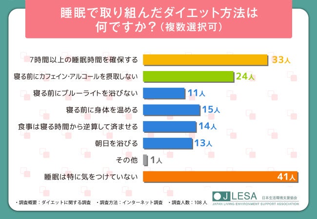 そこで次に、「睡眠で取り組んだダイエット方法は何ですか?」と聞いたところ、