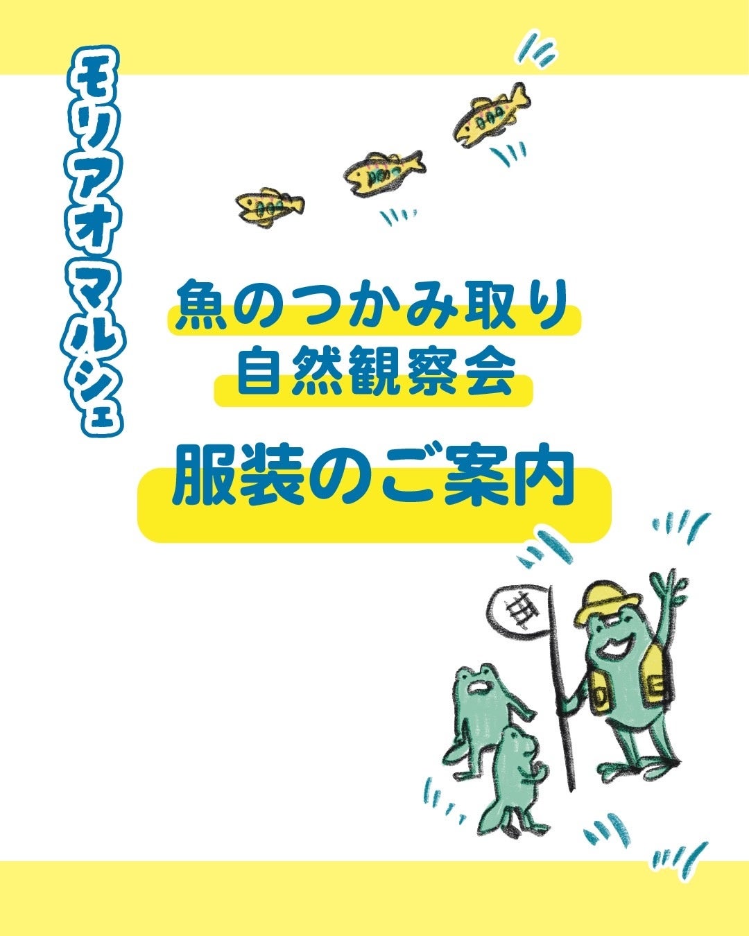 「モリアオマルシェ」は、親子で楽しめる自然体験が充実しています。魚のつかみ取りや川の生き物観察会、モリアオガエルの観察会など、自然とふれあいながら学べるプログラムが多数用意されています。