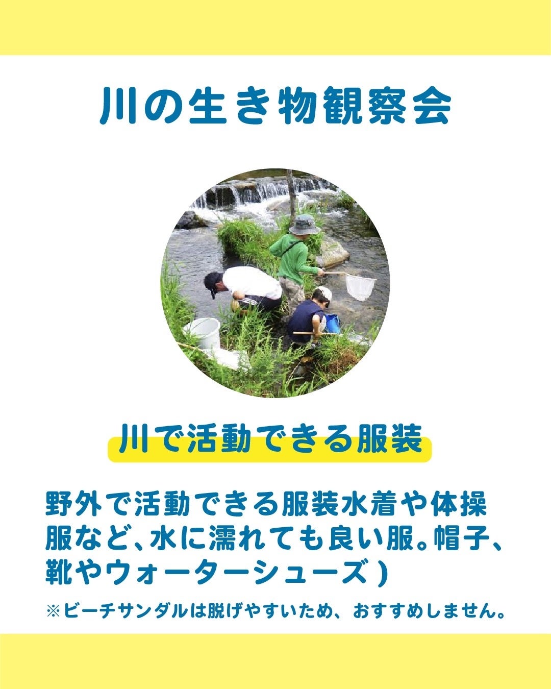 ・ 川の生き物観察会:①10:30〜12:00 ②13:30〜15:00