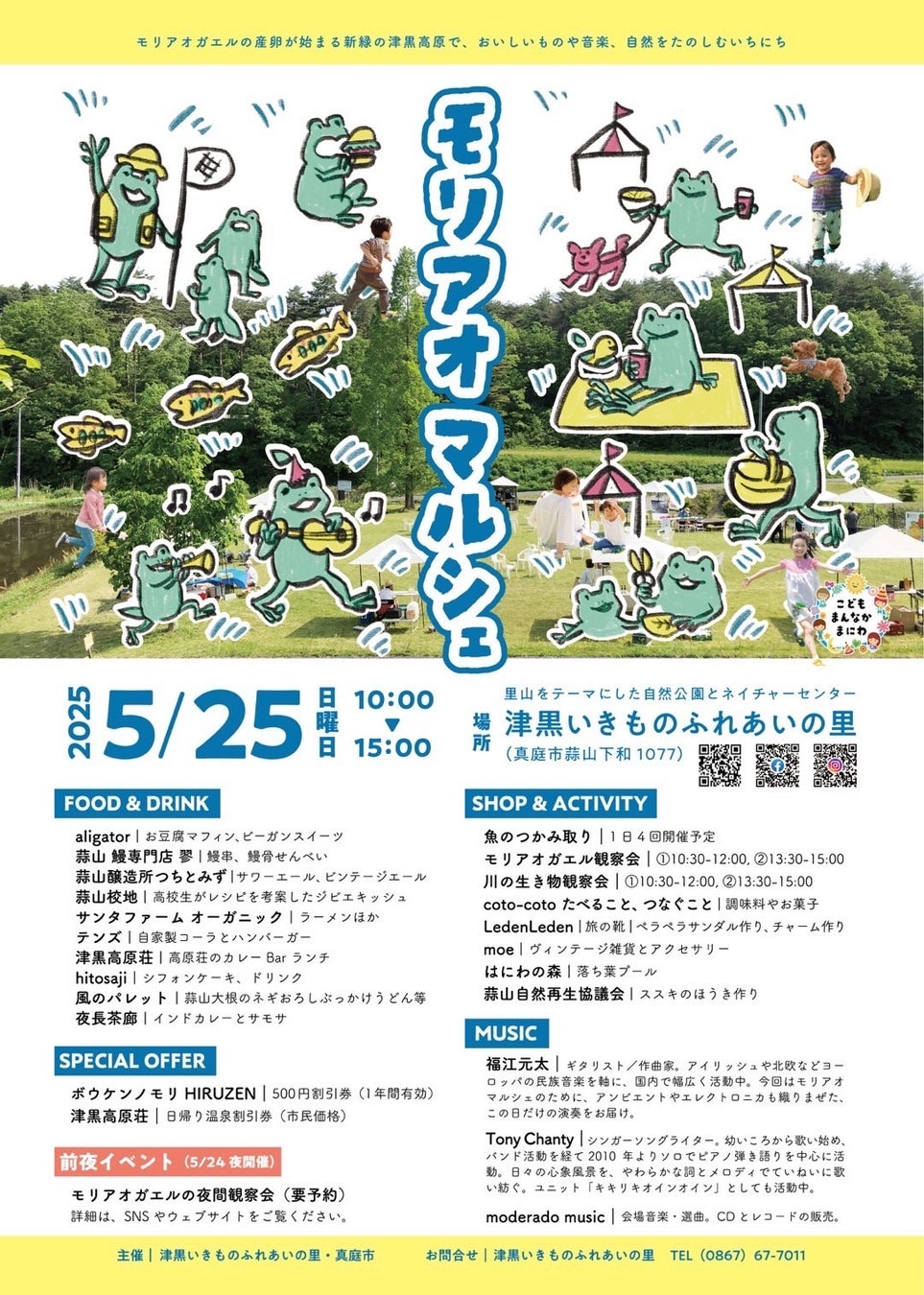 イベント名の「モリアオマルシェ」は、津黒高原に暮らすちいさな生きもの、モリアオガエルにちなんで名づけられました。