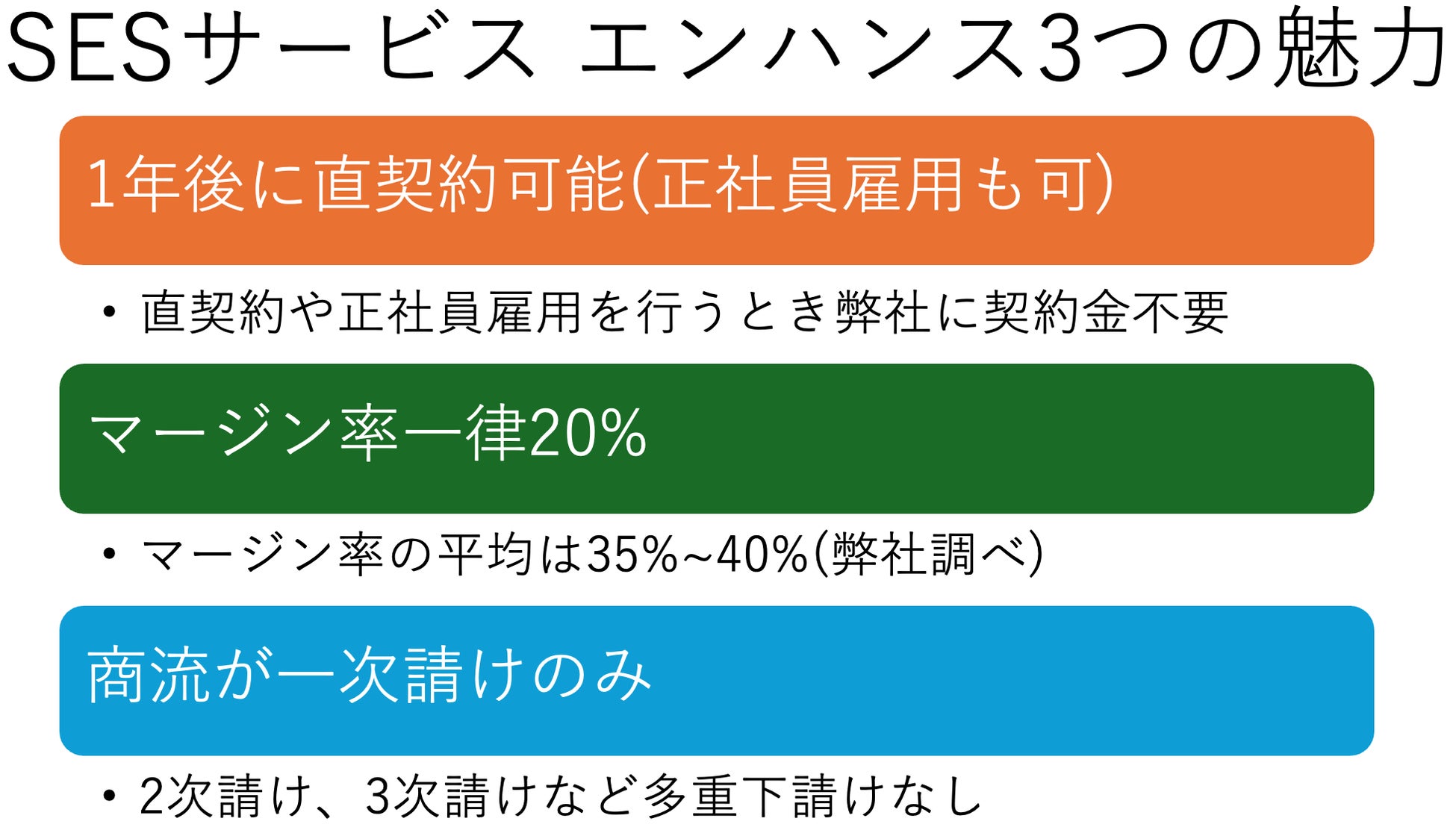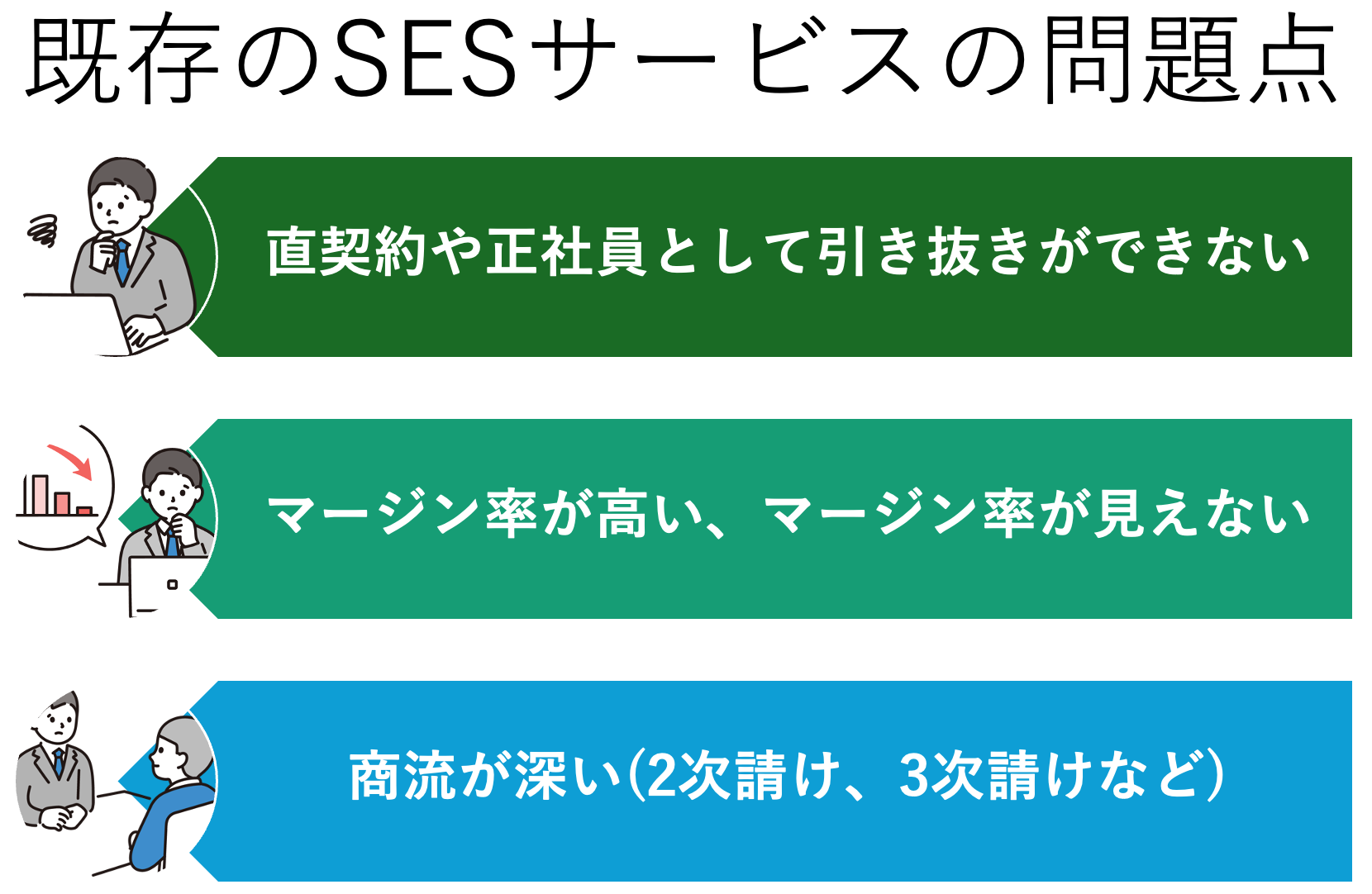数年間など長くエンド企業と契約を行った場合に、間に挟んだSES会社やエージェントにお金を払い続けなければならない