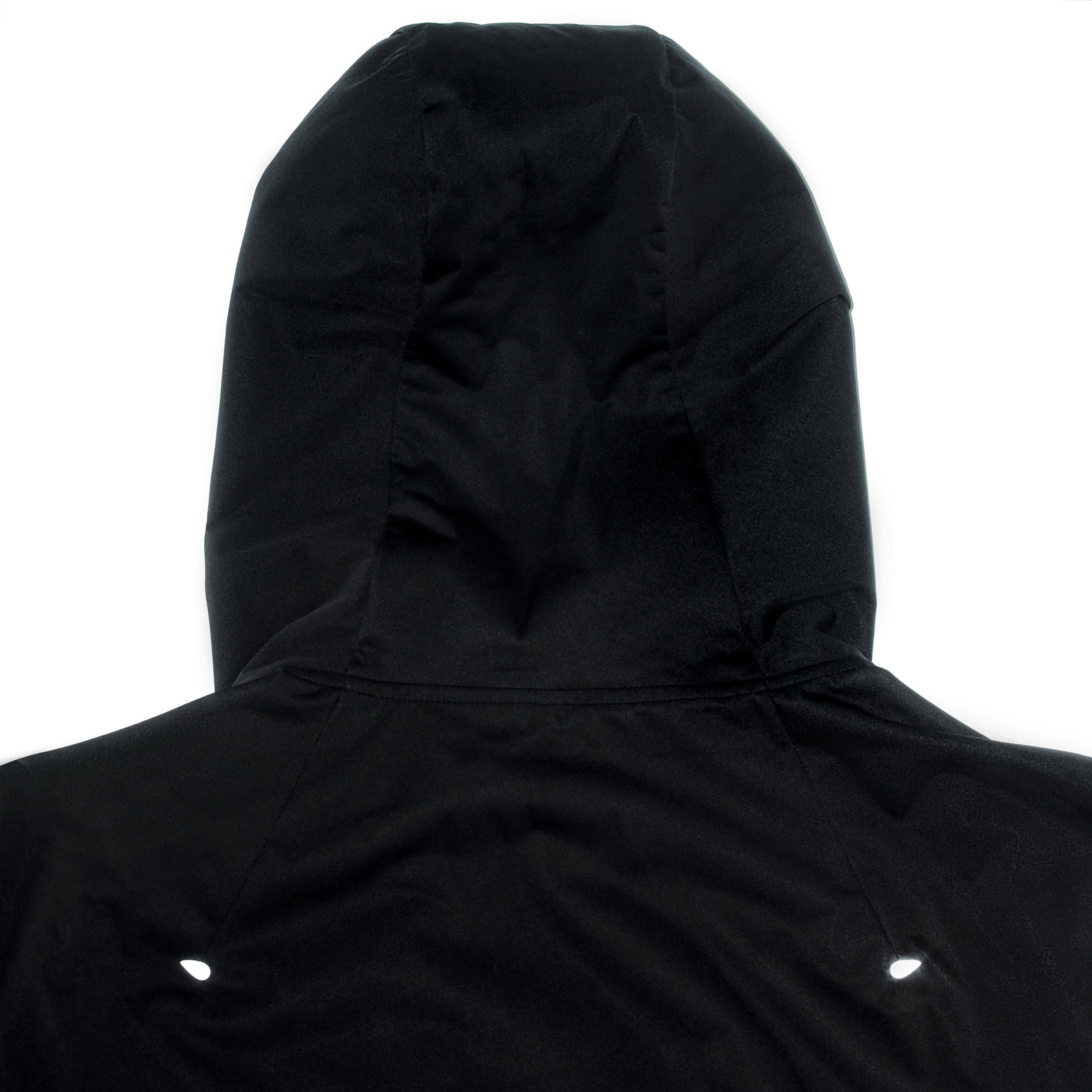 ザウナスーツのフードの下にかぶれば不審者感が半減。ザウナボーイロゴはリフレクター素材のため夜でも安心。
