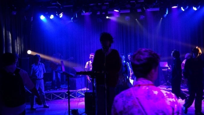 会場中央のボーカルと、四方に分散した演奏者たちが織り成す音のコミュケーション。観客は自由に歩き回り、好きな音に耳を傾けたり、場所による音の違いを楽しむ「空間音響体験」ができる。