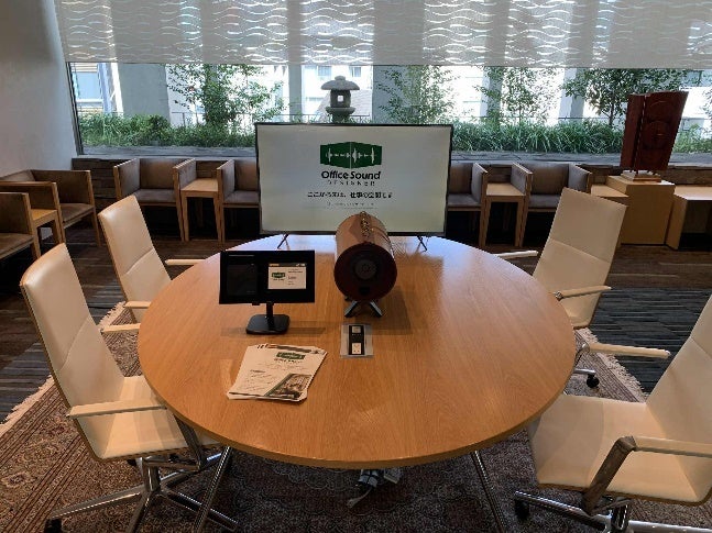 デジタルクルーズ株式会社と共同開発中の、オフィスの音環境改善サービスのプロトタイプ展示。騒音の緩和やマスキングではなく、オフィスの作業音によって「空間を仕切る」新しい発想を提案。