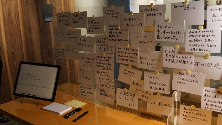 中心に立つと 音の中にいるように感じられました / 目を閉じたら 船の底にいるような感じがしました / 大自然の中にいるような / 目を閉じるとこわかった / 夜の地下道