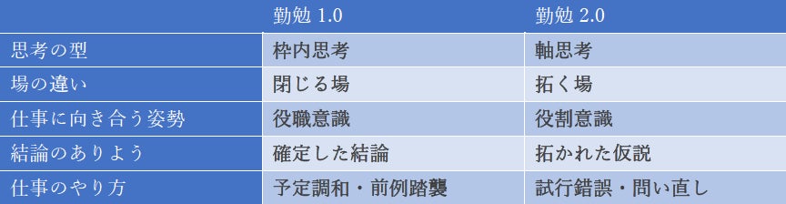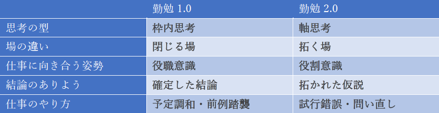 枠内思考…定型業務を効率的にさばくことに適した思考。ルールや約束事、前例などを枠として捉え、その枠の範囲で「どうやるか」を考える。新しい価値を創っていこうというときには向かないが、すでに経験のある業務のオペレーションには有効に機能する。