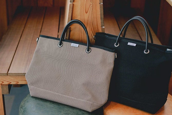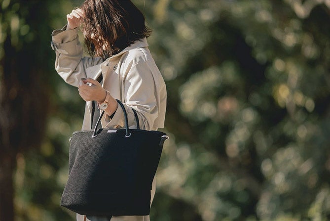 「柔らかいのに自立するから使いやすい」と好評のトートバッグ。