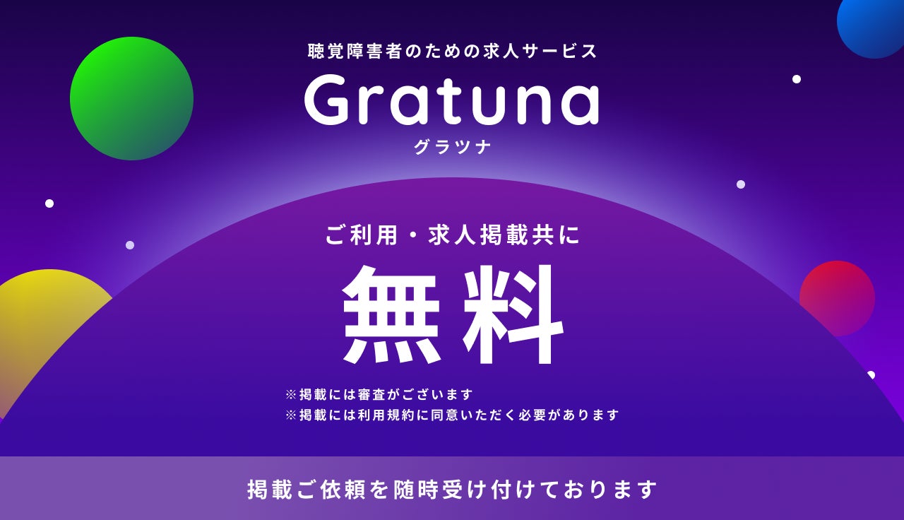 障害のある社会をデザインで変えるデザインベンチャー株式会社方角(本社:東京都渋谷区、代表取締役:方山れいこ、以下「当社」)は、聴覚障害者に特化した求人サービス「Gratuna (グラツナ)」において、2023年1月にリリースする求人サイトへの掲載を無料にすることを決定いたしました。